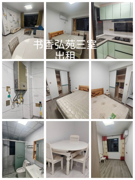 书香弘苑三室两厅精装出租,拧包入住家具家电齐全。房租实惠包含物业费,近产业园区近学校。近高铁站。